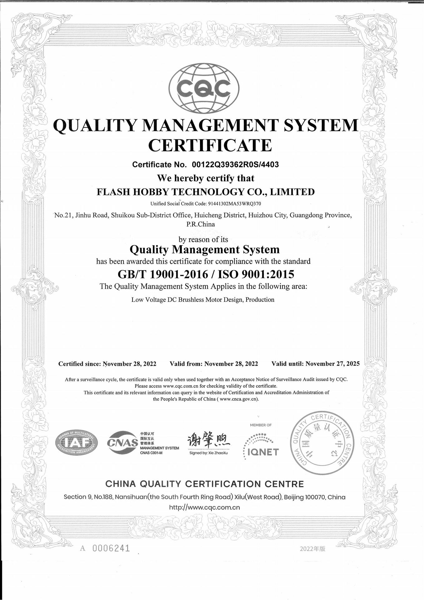 QUALITY MANAGEMENT SYSTEM CERTIFICATE